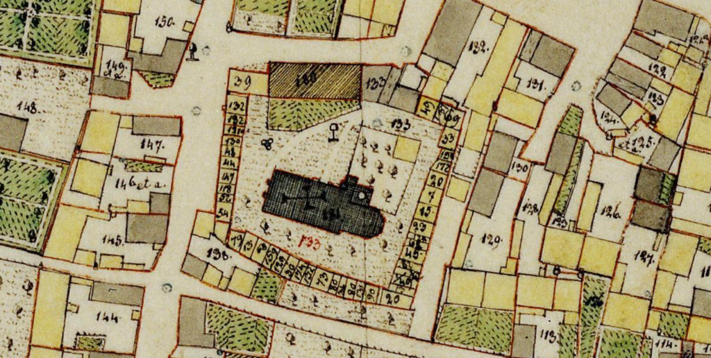 Die Kirchenburg mit der Gadenanlage war in früheren Jahren ringsum geschlossen, der einzige Zugang erfolgte über den Torbogen im Norden. Ende des 19. Jahrhunderts wurden einzelne Gaden an der Westseite abgebrochen um den Zugang zur Kirche zu erleichtern und um 1904/05 in der nordwestlichen Ecke ein neues Schulgebäude zu errichten.